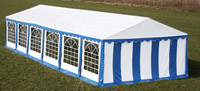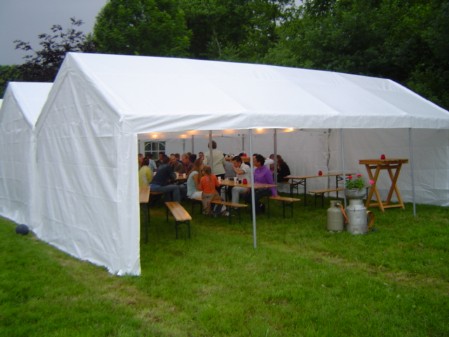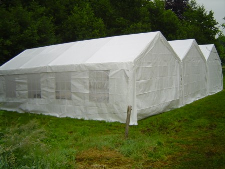 Deze tenten zijn 6 x 12 meter en er kunnen meerder tenten aan elkaar gekoppelt worden dmv een dakgoot.